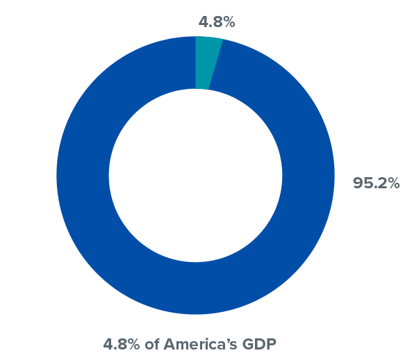 Nearly $280 billion annually is contributed in the form of federal, state, and local tax revenues. This includes more than $69 billion in federal income taxes and $79 billion in state revenue.